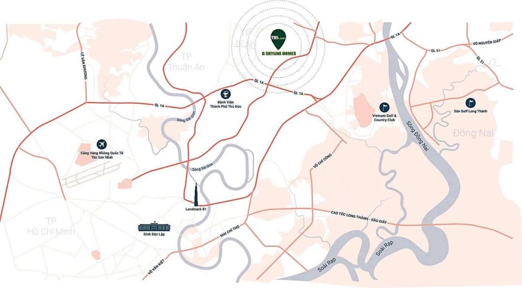 Dự án G Skyline Homes tọa lại tại GS01 với Quốc lộ 1K, phường Đông Hoà, TP Hồ Chí Minh (TP Dĩ An, tỉnh Bình Dương cũ). Quốc lộ 1K là tuyến huyết mạch quan trọng kết nối TPHCM với Đồng Nai và Bình Dương. Quy mô 4 – 10 làn xe rộng rãi giúp cư dân và các nhà đầu tư tương lai dễ dàng di chuyển và tiếp cận đến nhiều tiện ích chất lượng như: